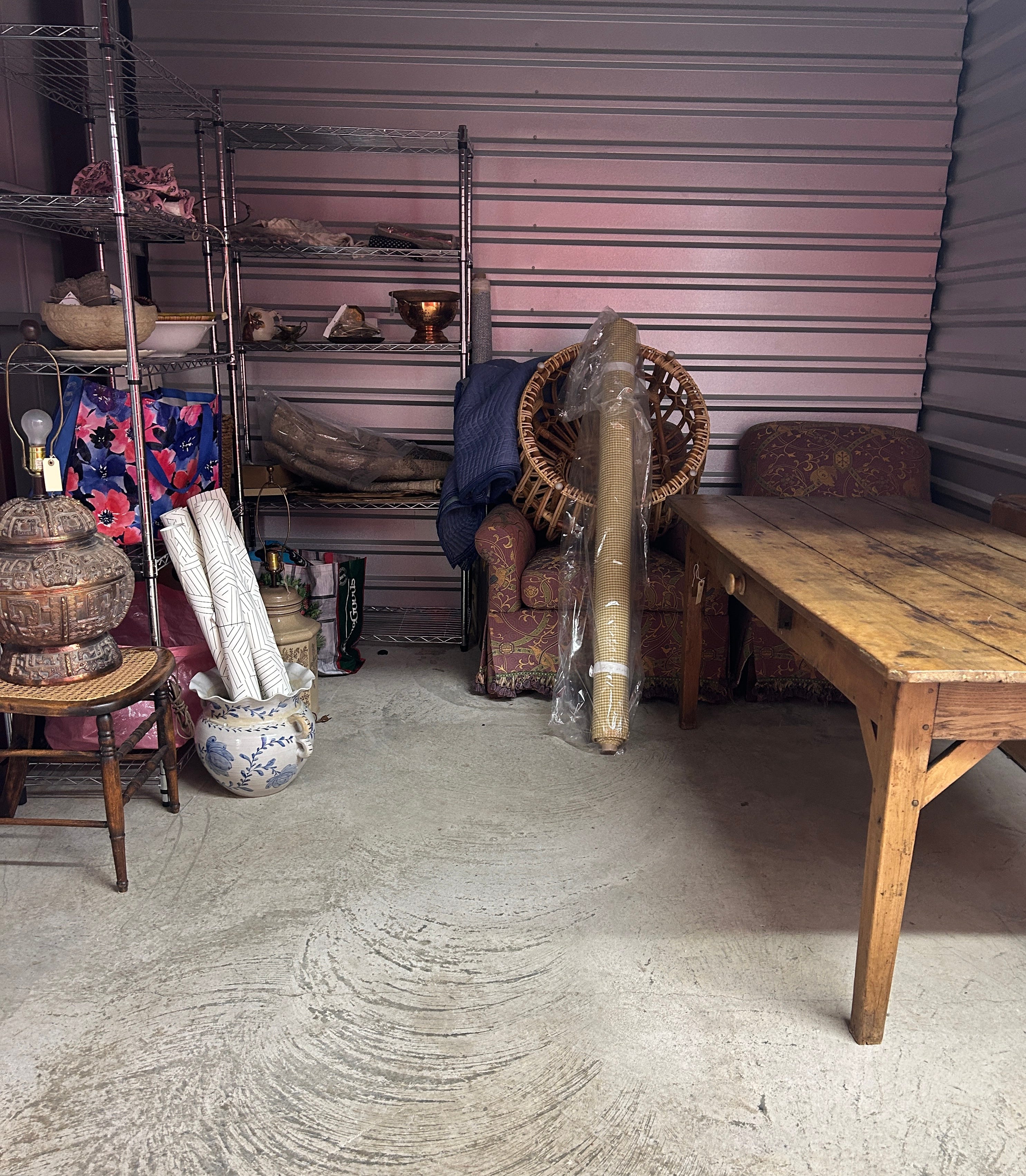 I never had a storage unit until I started accumulating things for design projects. I would be out shopping for clients and come across furniture, lighting, mirrors, art, vintage rugs, etc. that I just couldn’t pass up. I wouldn’t necessarily have a place for these things at the moment, but most of them were one-of-a-kind or priced to sell and I thought surely I’d find a place for them. Once the storage unit started to get a bit full, I decided to open an antique booth in town. Man, that was a lot of work and a lot of schlepping. Although most of my items in the booth sold, I ended up putting several things back in storage.